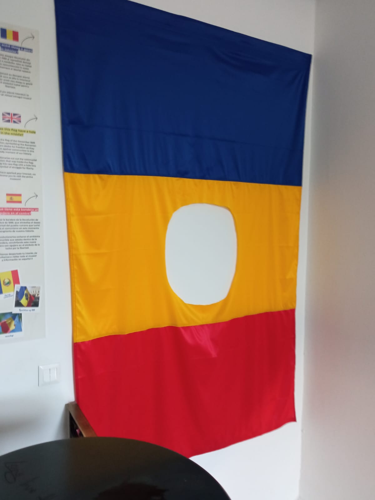 Romanya’nın bayrağı dikey olarak mavi sarı ve kırmızı üç şeritten oluşuyor. Bu renklerden mavi özgürlük ve refahı, sarı olanı güneşi ve ülkenin sahip olduğu madenleri, kırmızı şerit ise ülke için verilen mücadelelerde dökülen kanı temsil ediyor. Komünist dönemde ortadaki sarı şeridin üzerinde komünizmi sembolize eden yuvarlak bir figür varmış. Devrime öncülük eden isyanlar sırasında bu figür çıkarılarak ortası delik bayraklar adeta isyanın bir sembolü olarak kullanılmış.