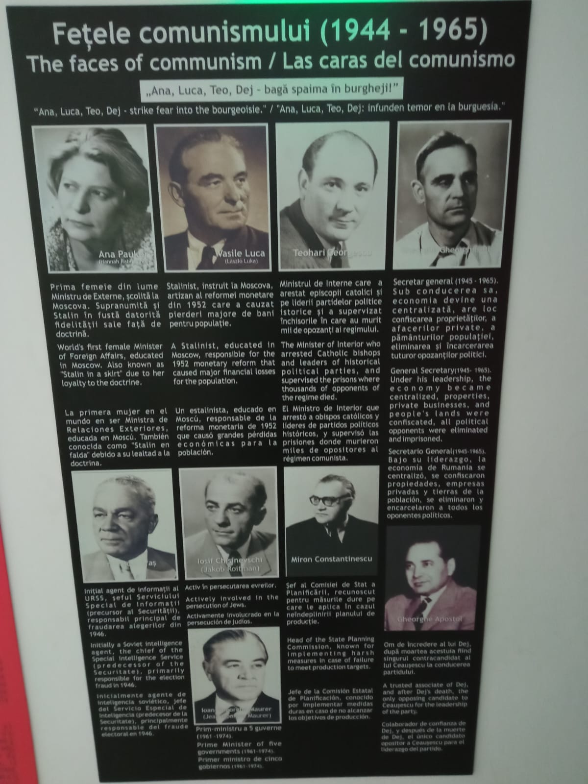 Yukarıda kısaca özetlediğimiz bu komünist dönem ile ilgili olarak müzede birçok görsel belge ve kayıt yer almakta. Yine o zaman dilimi içinde insanların kullandıkları objeler de sergileniyor. Ayrıca müzede görevli lisan bilen bir personele ziyaretçiler bu dönem ile ilgili sorular sorma imkanına sahip.