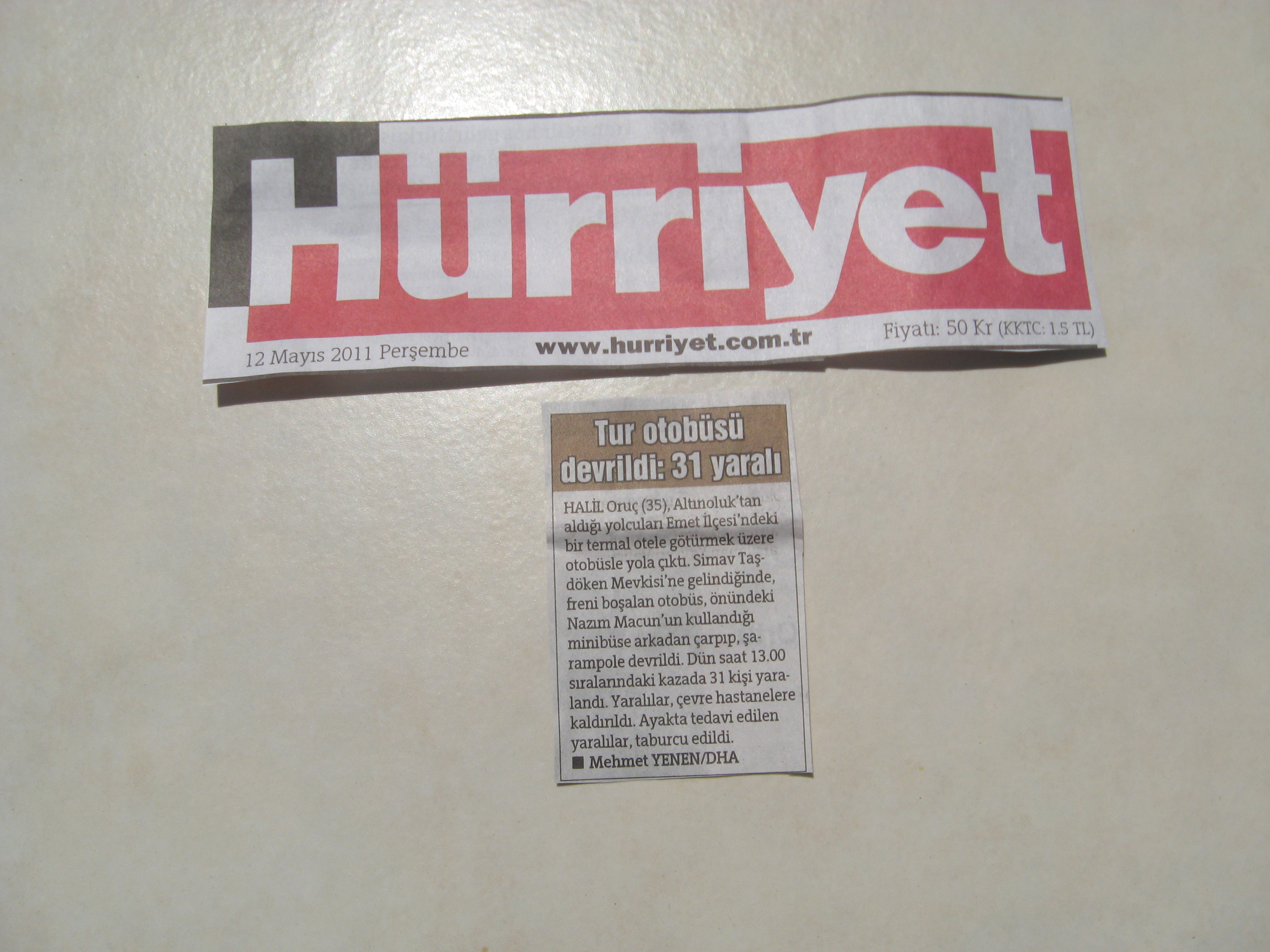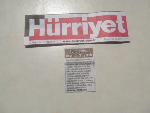 bizimde burda bir arkadasimiz dun gece kaza yapti.sabah ofise geldim herkes kazadan bahsediyor.o da cok sukur buyuk bir kazayi yara almadan atlatti.bunun uzerine dincer bana sizin kazanin haber linkini gonderdi.yani gune kaza haberleriyle basladim ama umarim gununum devami mutlu haberlerle devam eder.