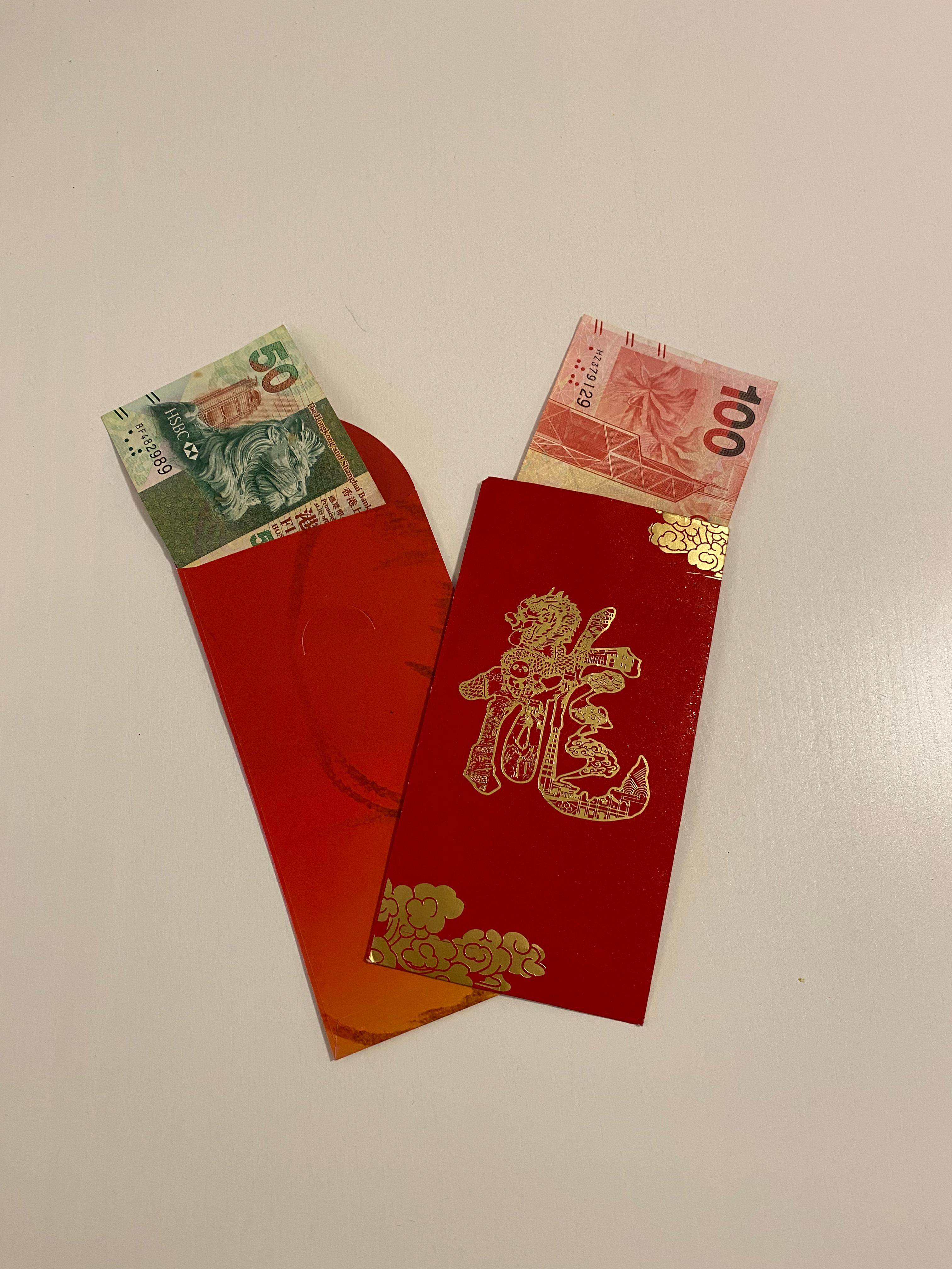 Bizdeki bayramlarda olduğu gibi Çin yeni yılında da insanlar birbirlerine hediyeler armağanlar alıyor. Harçlık ya da bahşiş dediğimiz nakit vermek de çok yaygın. Ancak bunun da kendine özgü bir ritüeli var. Genelde Aile büyükleri çocuklara, Apartmanda oturanlar apartman çalışanlarına, Patronlar çalıştırdığı elemanlarına, yani hizmet alanlar hizmet verenlere yeni yılda harçlık ya da bahşiş veriyor. Tabi bu paranın banknot ve miktar olarak gösterilmeden bir zarf içinde verilmesi gerekiyor. Bunun için kırmızı rengin ağır bastığı özel zarflar var. O hafta birçok kişi bizim düğünlerde gelin arabasının şoföründe olduğu gibi içinde para dolu zarflar taşıyor. Bu paranın sunumu da çok önemli. Kırmızı zarfı takdim eden kişi mutlaka zarfı iki eliyle tutarak muhatabına uzatıyor. Zarfı alan da yine iki eliyle alıyor ve hafifçe eğilerek iki elini birleştirip başını öne eğip teşekkür ederek kendilerine özgü selam ve saygısını sunuyor.
