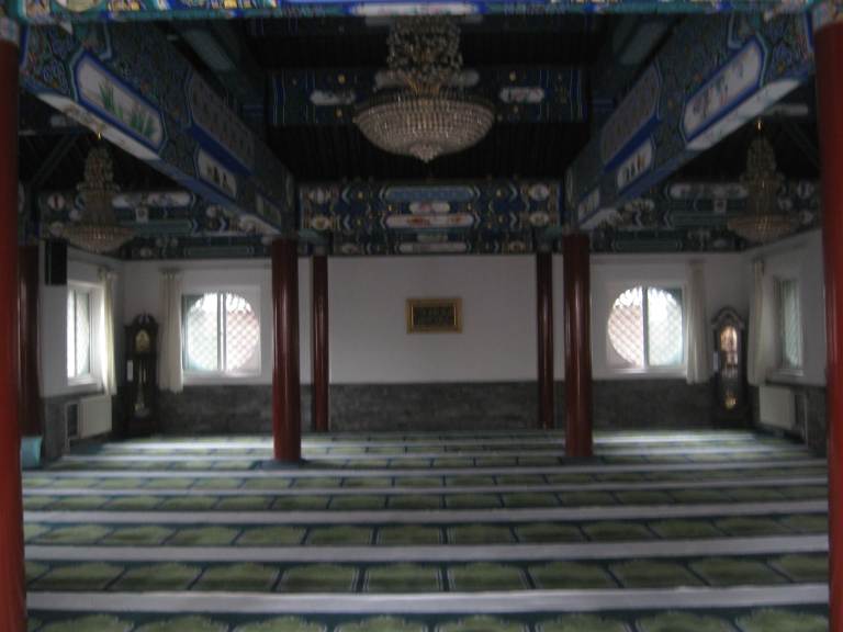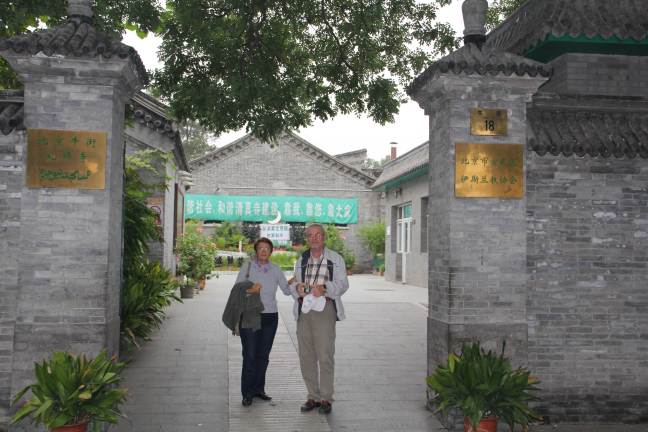 Gerek Şangay’da ve gerekse Pekin’de kral mezarları, bahçeleri, tapınakları gezerken bir de burada çok eski ve tarihi değeri de çok olan bir caminin varlığını da duyunca kısa ziyaret programımıza burasını da dahil ettik. Caminin bulunduğu bölgeye geldiğimizde buradaki insanların, yapıların, işyerlerinin, görüntülerinden burada müslümanların yaşadığı hemen farkediliyordu. Ziyaret ettiğimiz ve bin yıldan fazla geçmişi olan Niujie Camii’nin inşaatına 996 yılında Nasuriddin isimli bir Arap tarafından başlandığı, ayrıca 1068 ve 1077 arasında bizim düşündüğümüz manada ve görüntüde olmamakla birlikte caminin bütünü ile uyum sağlayacak şekilde bir minare ilavesi yapıldığı, 1496 yılında da yapılan düzenlemelerle bugünkü görüntüsüne kavuşuğu bilgisine ulaştık.