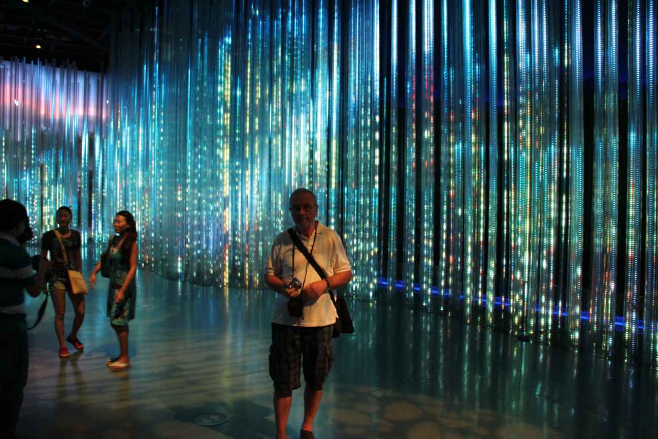 2010 yılında yapılan ve altı ay süren bu etkinliklere katılan tüm ülkeler tabir yerinde ise tasını tarağını toplayıp gitmiş. Ancak Çin hem ev sahibi olmanın verdiği rahatlıkla, hem de yaptığı yatırımın meyvalarını daha fazla toplamak ve de tanıtım ve reklamını daha uzun bir zamana yaymak adına kendisine ait olarak yaptırdığı mekanı hala ziyarete açık tutuyor. Gerek görüntüsü gerek mimarisi ile bu yapı her yönden farklı olduğunu hemen hissettiriyor. Binaya girdiğinizde şaşkınlıkla hayranlık karışımı bir duygu yaşıyorsunuz. İçeriye alınan ziyaretçiler önce üç duvarı ekran haline getirilmiş büyük bir salona alınıyor. Burada müzik eşliğinde yarım saate yakın bir sunumda, Çinin geçmişten bu güne geçirdiği gelişim özetleniyor. Daha sonra pavyonun diğer bölümlerinin ziyareti başlıyor. Görüntü, ışık ve müziğin son derece ahenkli buluşmasına tanık oluyorsunuz ziyaret süresince.