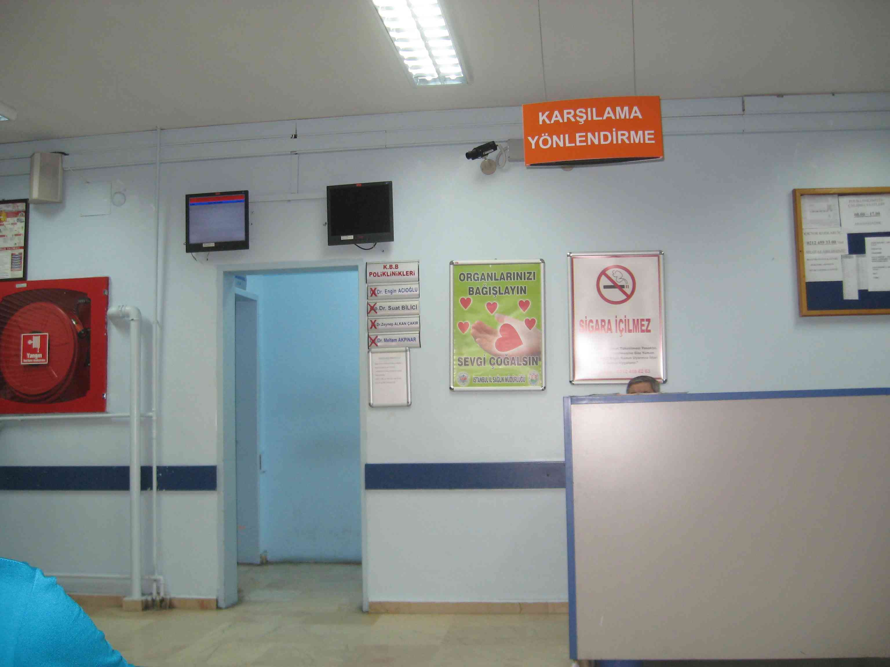 Tabi pat diye giremiyorsunuz.Önce randevulu da olsanız müracaata giderek barkotunuzu almanız gerekiyor. Barkotta da sıra numaranızın 43 olduğunuzu görünce saat ayarlı sistem ile sıra ayarlı bir sistem arasında kaldığımı hissediyorum. Poliklinik kapısına yönelince içlerinde benim randevu aldığım doktor Engin Acıoğlu’nun da bulunduğu dört uzman doktorun isimlerinin üzerlerine orada olmadığı anlamına gelen kırmızı çarpı işareti konduğunu gördüğümde .İçimden “ dakika bir,gol bir” dedim.Doktor seçme şansı veya hakkı bir anda dip yaptı.Hoş ben de zaten seçimimi bilerek yapmamıştım.Yani öylesine bir işaretleme idi .Fark etmez sarhoş etsin de rakı da bir,şarap da bir misali muayene etsin de kim ederse etsin diye düşündüm.Kapıdaki monitörün ekranında 43 numara ile adım yer aldı. Ekranda herkes kendini ve sırasını görüyordu ama aynı zamanda Ecevit mavisi giysisi ile bir de görevli vardı.Duruma göre:”Dur, bekle,girme,içerde hasta var” talimatları ile oradaki mevcudiyetine bir anlam yüklüyordu.