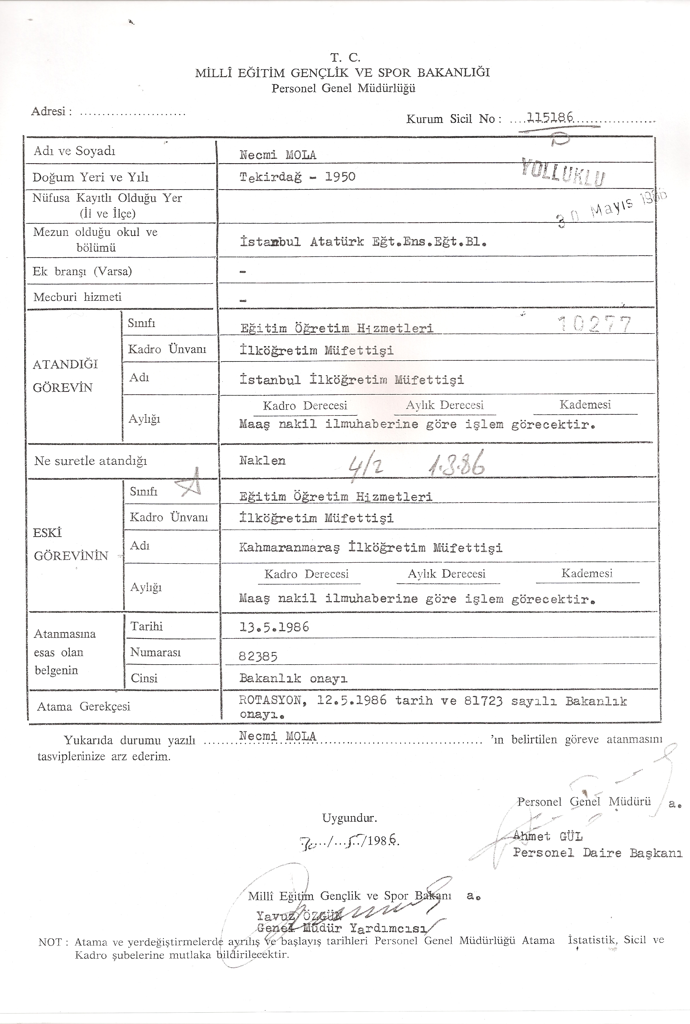 1986 yılından emekliye ayrıldığım 2007 eylülüne kadar yani 21 yıl İstanbul’da çalıştım. Yani toplam görev süremin yarıdan fazlası İstanbul’da geçmiş oldu.Teftiş gruplarında,inceleme soruşturma gruplarında çeşitli komisyonlarda çalıştım.