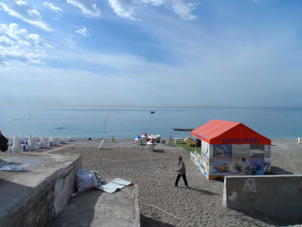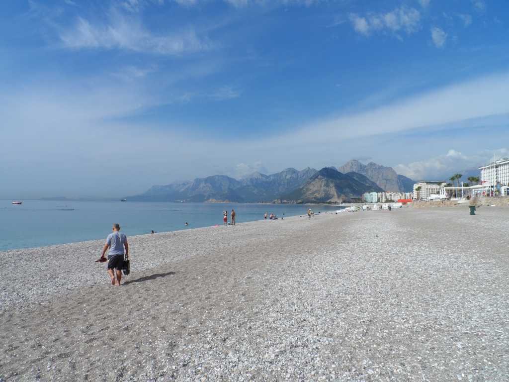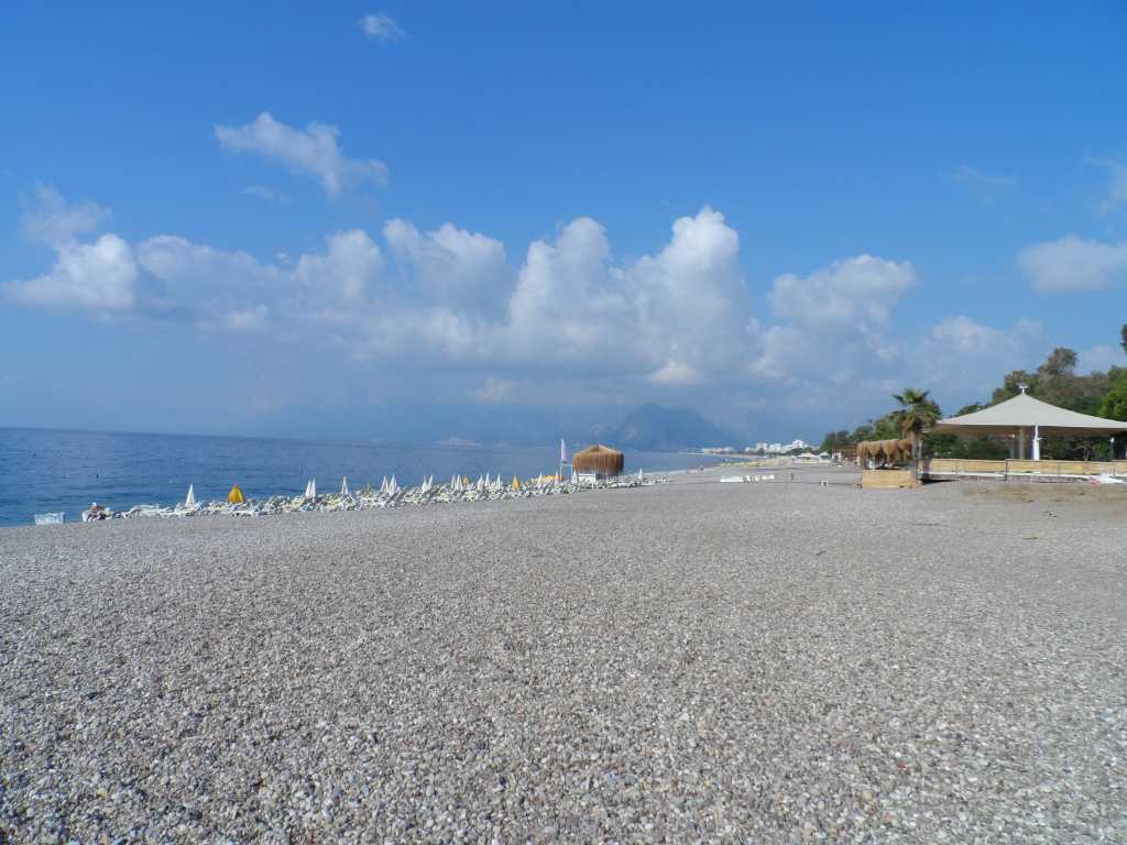 Bildiğim kadarı ile Antalya’nın en büyük plajlarından biri olan Konyaaltı plajı şehrin batı kısmına düşüyor. Doğu kısmında da Lara plajı olduğunu öğrendim.(İlerde orasını da gördüğümde bir yazı da oradan çıkarırım düşüncesini şimdilik kenarda bırakıyorum.) Yaklaşık 7-8 kilometre kesintisiz bir sahil bandında yer alan plajın her noktasından denize girilebilmesi burada yaşayanlara ve ziyaretçilere çok zevkli fırsatlar sunuyor. Büyük bir bölümü Akdeniz bulvarına paralel yerleşmiş bu plajın mavi bayraklı olduğunu, temizliği ve korunması konusunda son derece titiz davranıldığını eklemeliyim. Belli aralıklarla var olan tuvaletler,soyunma kabinleri ve duş sistemlerinin ücretsiz olarak halkın hizmetine sunulması gerçekten sevindirici. Ayrıca oteller de kendi müşterileri için belli yerler düzenlemiş durumda. Plajın doğu kısmında bulvarın sahilden uzaklaştığı bölümde daha fazla yeşil alan ile buluşan sahilde her biri farklı konsepte çeşitli işletmeler,su sporlarına imkan veren tesisler yer almakta. Zemin özelliği bakımından bu sahile kumsal demek doğru olmaz sanırım. Daha çok iri kumlarla birlikte mercimek, fasulye ,fındık,ceviz büyüklüğündeki yuvarlak beyaz taşların karışımından oluşan bir zemin dersek bilmem anlatmış olabilir miyim. Denize ayağınızı attığınızdan itibaren en fazla 4-5 metre sonra suyun boyunuzu geçtiğini de bilmenizde yarar var. Bazılarına göre bu durum bir avantaj da dezavantaj da kabul edilebilir. Buraya ait söylenecek daha çok şey var. Ama iyisi mi siz yolunuzu bu istikamete çevirin ve bu güzelliği bizzat yaşayın derim ben.