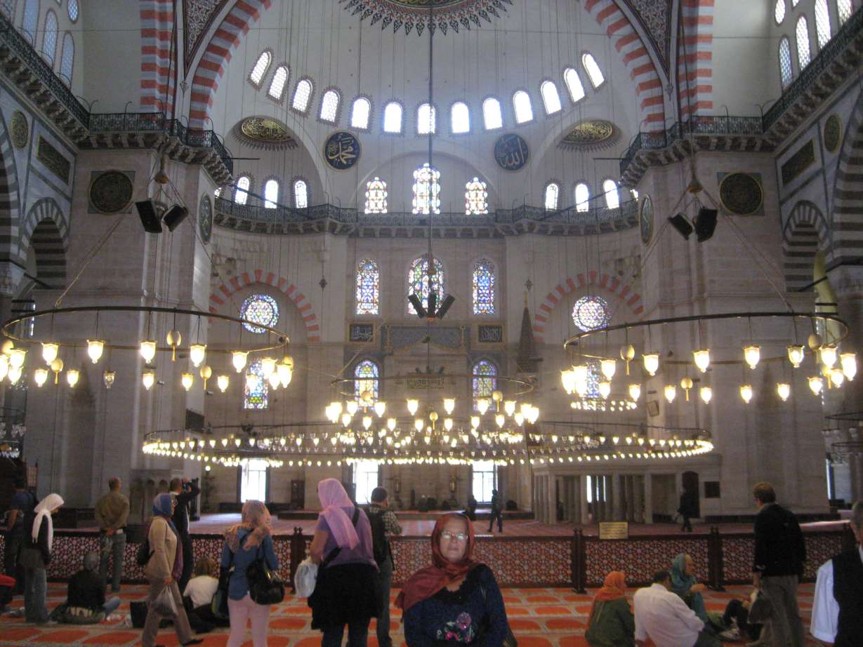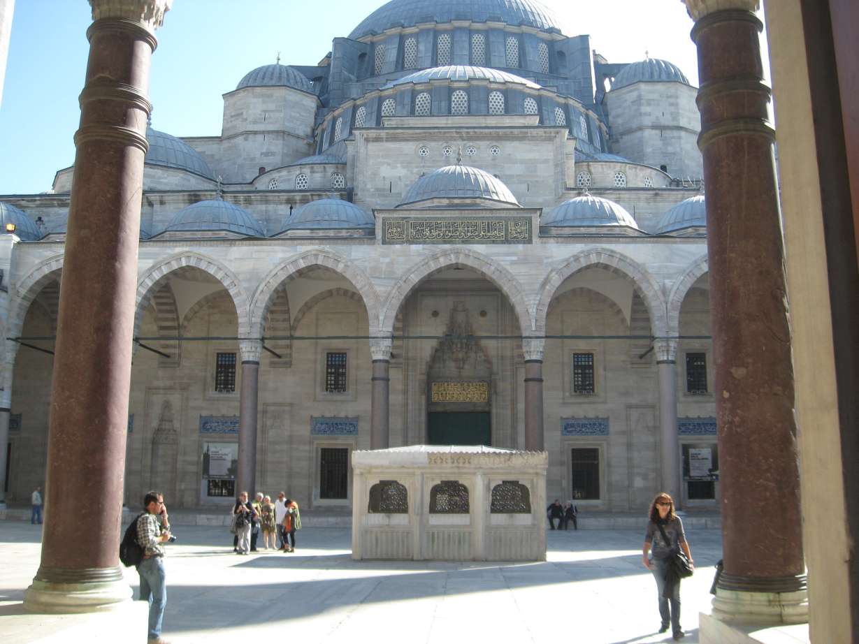 Süleymaniye camii Kanuni Sultan Süleyman zamanında Mimar Sinan tarafından yedi yıl süren bir çalışmadan sonra 1557 yılında tamamlanmış. Caminin İstanbul’un yedi tepesinden birine eklentileri ile birlikte yaklaşık 70 dönümlük bir alan üzerine kurulduğu dikkate alındığında İstanbul’un en büyük camileri arasında yer almasına hiç şaşmamak gerekir. İç alanı 3422 m2, kubbe genişliği 27,25 m, yüksekliği ise 48,8 metredir. Cami yerleşkesinde cami mimarisi ile uyum içinde birinde Hürrem Sultan, Şehzade Mehmet ile hanım sultanın, diğerinde de K.Sultan Süleyman, Rabia Sultan, Sultan II. Ahmet, Sultan II. Süleyman, Mihrimah ve Asiye sultanların kabirlerinin bulunduğu türbeler bulunmaktadır.