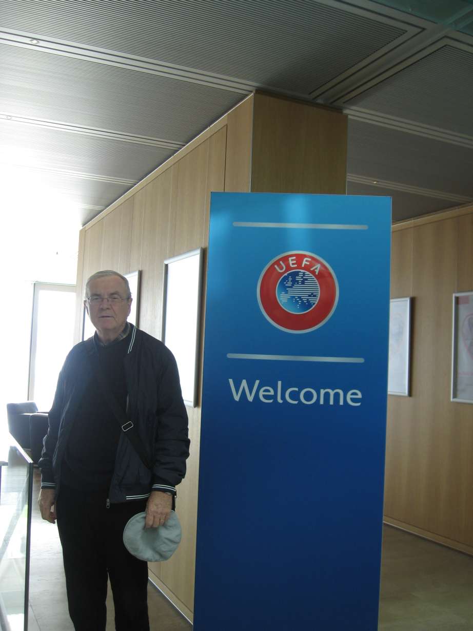 Leman gölü kıyısında yürürken üzerinde “UEFA” yazılı yönlendirme levhasını da görünce istenilen yeri bulmak çok da zor olmadı. Biz aslında yoğun bir insan trafiğinin yaşanacağı bir mekan düşünüyorduk. Ama neredeyse “İn cin top atıyor” diyebiliriz. Kapısında devasa bir “UEFA”yazısını da göremedik. Bahçesinde gezerken ya da binanın içinde dolaşırken hiç kimse de sorgu sual etmedi. Bir kaç çalışan görevli kendi rutin işlerini yürütüyor, sorarsak da sorularımızı yanıtlıyordu. Duvarlardaki asılı “TFF “ arması, yönetim kurulu içindeki Şenez Erzik’in resmi, özellikle de Galatasarayımızın kupa kazanan kulüpler arasında adının geçmesi bizi hayli heyecanlandırdığını söyleyebilirim.