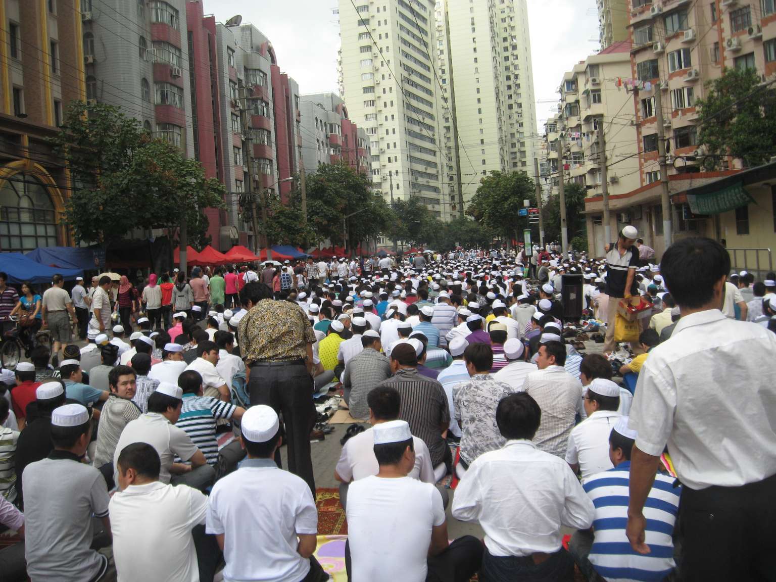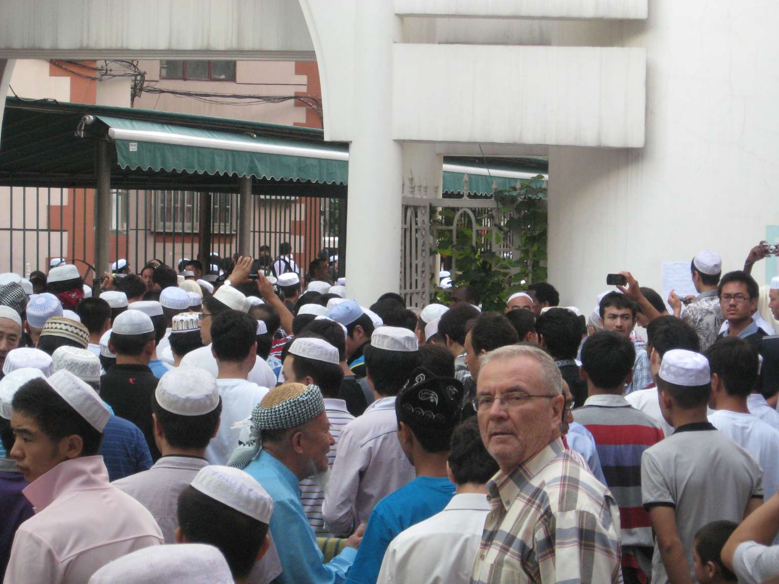 Bayram namazı ritüelleri evrensel olduğu için pek yabancılık çekmedik. Sadece hutbe ve vaaz Çince olduğundan içinde geçen Allah ve Muhammet kelimeleri dışında hiçbirini anlamadık tabi. Burada farklı olarak kadınların da kendilerine ayrılan yerde bayram namazına geldiklerini ayrıca kollarına taktıkları kırmızı bantla yardım toplama faaliyetlerine de iştirak ettiklerini gördük. Namaz sonrası büyük kalabalık birbiri ile bayramlaşıp yolun hemen karşısında kurulan seyyar satıcılardan gerekli gördüğü alışverişleri de yaptıktan sonra dağıldı.