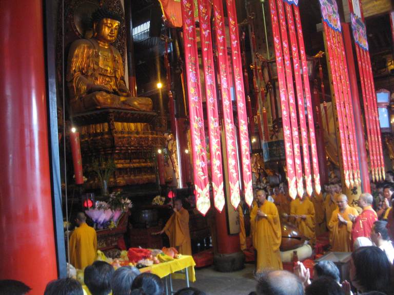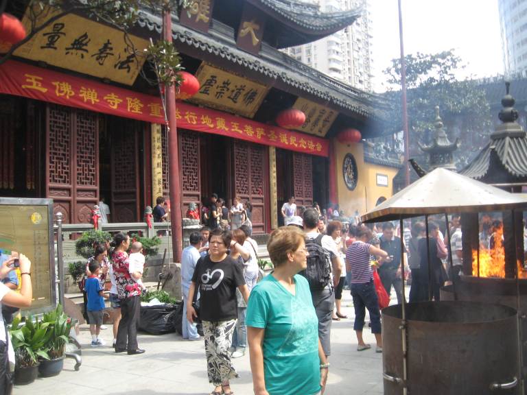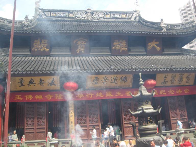Hristiyanlık ve İslamiyet ile ilgili olarak tarihsel gelişim, bağlı oldukları kitap ve peygamberler, ibadet usul ve mekanları hakkında belli miktar bilgimiz olsa da Çinde en çok taraftarı olan budizm hakkında ve ibadet yerleri ile ilgili hiç bir bilgim ve gözlemim yoktu. Bu bakımdan Şangay’da evimize yakın olan ve yazımın başlığında adı belirtilen iki budist tapınağı farklı zamanlarda da olsa eşimle birlikte ziyaret ettik. Mimari yapıları bakımdan son derece özgün ve farklı karakteri olan bu yapıları bizimle birlikte gelen her yaşta Çinli ibadet için ziyaret ediyordu. Tapınağın çeşitli bölümlerineki Buda heykellerinin önünde ellerini başlarının üzerlerinde birleştirdikten sonra yere çömelip birkaç kaz eğilip kaldırma biçimindeki ibadet 10-15 saniye falan sürüyordu. Ayrıca yakılan tütsüler budist rahiplerin kendilerine özgü kıyafetleri ile okudukları ilahiler ortamı daha mistik bir hale getiriyordu.