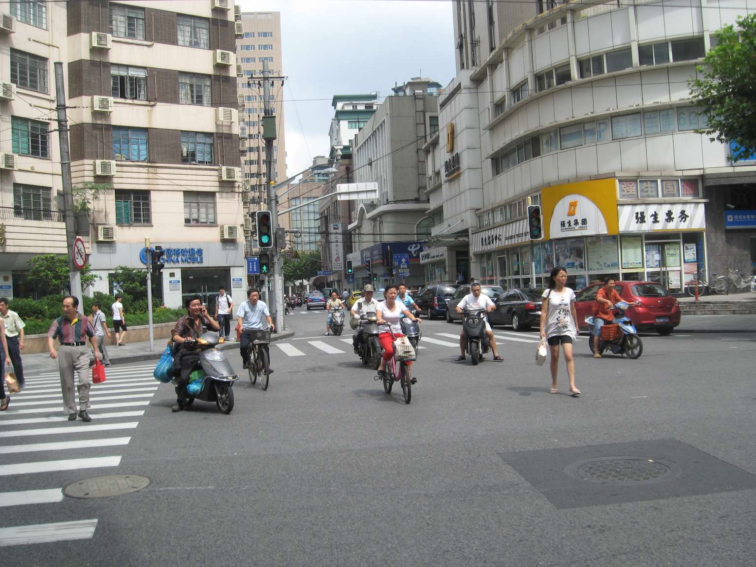 Çin’in bir çok kentinde olduğu gibi Şangay’da da bisiklet ve motorsikletin yediden yetmişe ulaşımda en çok tercih edilen araçlar arasında olduğunu söyleyebilirim. Trafik akışında diğer araçlar ile kıyaslandığında bu araçların sayıca daha fazla olduğunu tahmin ediyorum. Burada Amsterdamda olduğu gibi bütün yol güzergahlarında ayrı bisiklet yolu ya da park yerleri düzenlenmemiş olduğunu fark ettim.Bu araçlar da diğer araçlarla birlikte adeta kardeşçe ve sarmaş dolaş trafiğin içinde akıp gidiyor.