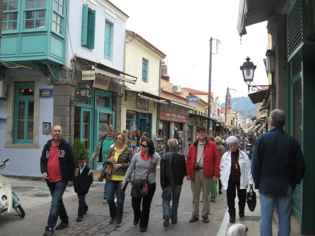 Öğle yemeğinden sonra Midilli merkezine yaklaşık 25-30 kilometre uzaklıktaki ve 475 metre rakımlı yeşil denizinin ortasına kurulmuş olan Agiasos’u görünce birden bizim Selçuk’taki Şirince’yi hatırladım. Tabi burasının daha temiz, daha korunmuş ve bakımlı olduğunu itiraf etmeliyim. Agiasos bitki zenginliği, mimari özellikleri yanında seramik sanatı ve tahta oymacılığı ile de öne çıkmış bir yerleşim birimidir. Adada her birinin farklı efsanesi bulunan kiliselerden biri olan Panagia kilisesi de Agiasos’ta bulunmakta ve ortodoks dünyasının önemli ziyaret yeri olarak kabul görmektedir. Ziyaretimiz sırasında sağanak bir yağmuru da Agiasos’da yaşadıktan sonra Midilli şehir merkezinin birkaç kilometre dışındaki otelimize döndük (SILVER BAY). Akşam yemeği saati olan 20.30 a kadar olan süreyi otelde dinlenerek geçirdik. Akşam yemeğimiz için gittiğimiz tavernada yerimizi aldığımızda saat 21.00 e gelmişti. saat 24.00 kadar yunan müziği ile türk müziğinin ortak ezgileri arasında herkes gönlünce eğlendi. Gecenin ilerleyen saatlerinde herkes günün yorgunluğunu atmak için oteldeki odasına çekildi.