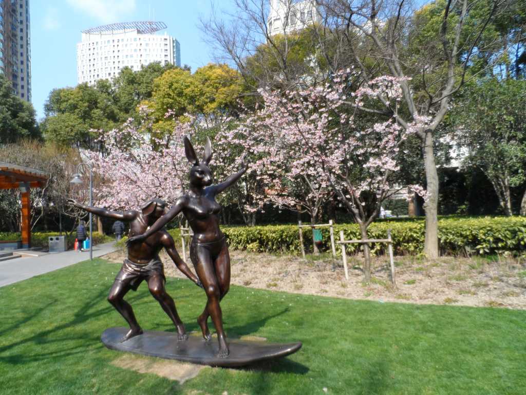 Chengdu, Bejing ve Shimen caddelerinin kesişme noktasında yer alan Jing’an Sculpture Park aynı zamanda heykel parkı olarak da biliniyor. Parkı gezerken birbirinden güzel tasarlanmış heykelleri gördüğünüzde bu ismin boşuna verilmediğini düşünüyorsunuz. Zaman zaman değişen bu heykel sunumları son derece güzel dizayn edilmiş bahçe ve bitkiler ortamında ziyaretçilere gerçekten son derece keyifli bir görsel şölen yaşatıyor. Özellikle bizim ziyaret ettiğimiz Mart başlarında Japonya’dan getirildiği belirtilen kiraz çiçeklerinin bulunduğu bölüm ziyaretçilerin en çok ilgisini çekiyordu.