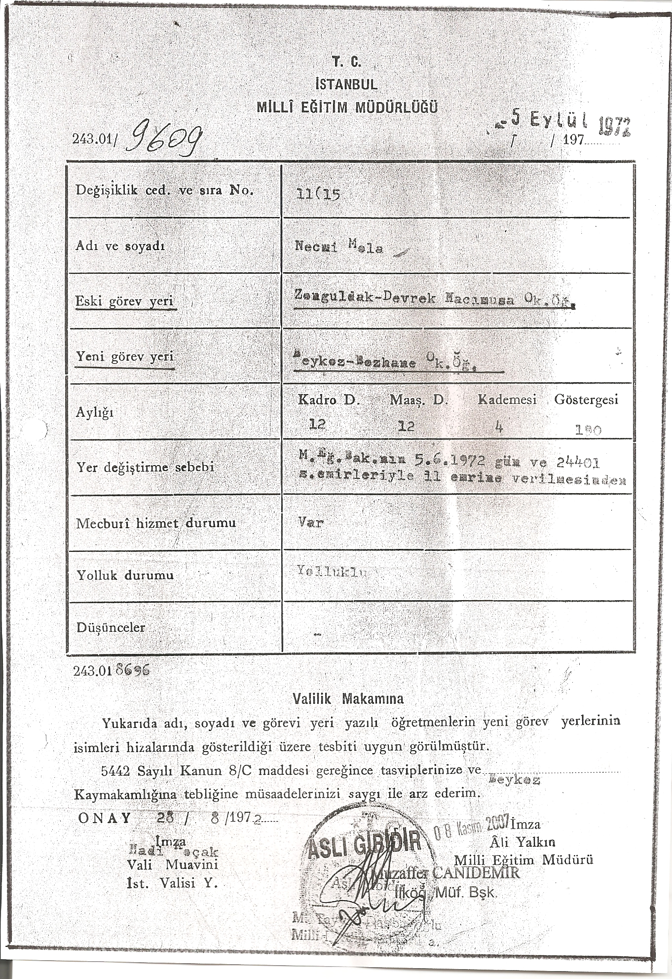 Eylül 1972 tarihi itibarı ile artık rüyaların ve hayallerin şehri İstanbul’daydım. Henüz görev yapacağım yer nokta olarak belli değildi ama bana göre her yer İstanbul’du. Milli Eğitim Müdürlüğünde bizlerden üç ilçe tercih etmemiz istendi. Bende memleketimize yakın olmasını da dikkate alarak Çatalca, Silivri, Büyük çekmece İlçelerinde görevlendirilmek üzere bir form doldurdum. Daha sonra Beykoz İlçesi, Bozhane köyü İlkokulunda görevlendirildiğimi öğrenince benim tercihimin ya hiç dikkate alınmadığı ya da çok fazla dikkate alındığı-tabi negatif açıdan- kanaatine vardım.