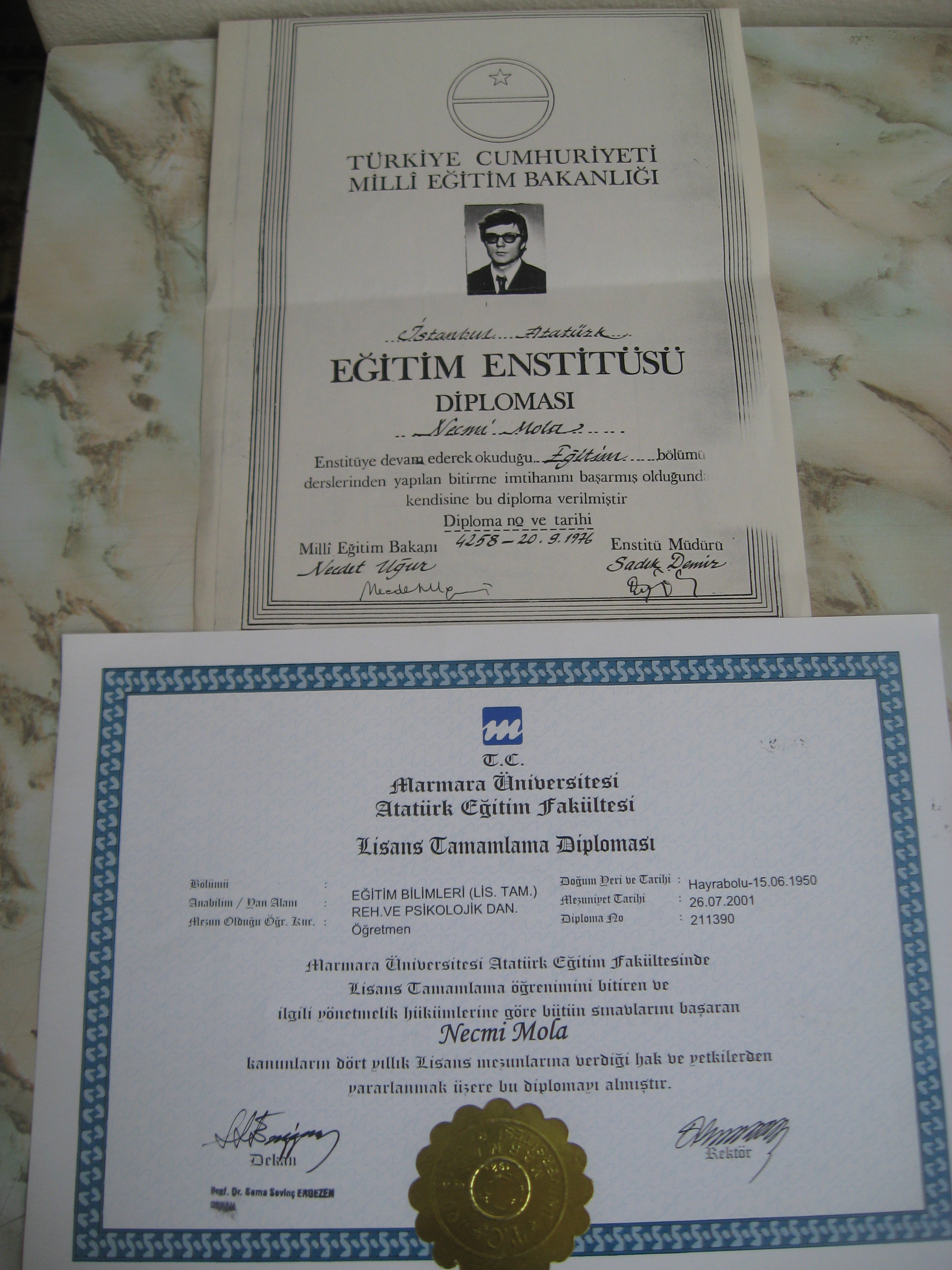 2000 li yıllarda lisans tamamlama programı için tekrar buluştum yüksek okulla. Marmara Üniversitesinde(Atatürk Eğitim Fakültesi) bir dönem büyük oğlum Dinçer’le birlikte gitme mutluluğunu da yaşadım. O Bilgisayar Mühendisliğine devam ederken bende rehberlik ve psikolojik hizmetler dalında lisansını tamamladım.