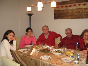 2011 yılını 2012 yılına bağlayan gecede eski komşumuz ve eskimeyen dostumuz Salih bey ve Filiz hanımların davetlisi idik. Onlarla birlikte Filiz hanımın ağabeyi Yusuf bey ve eşi Canan hanımda diğer konuklar arasında idi. Bu tür gecelerin vazgeçilmezi olan hindi dahil olmak üzere herşeyin son derece güzel ve lezzetli olduğunu hemen belirtmeliyim. Yemek sohbet ve televizyon izleme etkinliği saat 24.00 kadar sürdü. Arkamızda kıymetli insanları ve dakikaları bırakarak daha sonra aramıza katılmış olan yeğenlerimiz Şeyda ve Aslıhan’ı da alarak evimize döndük.