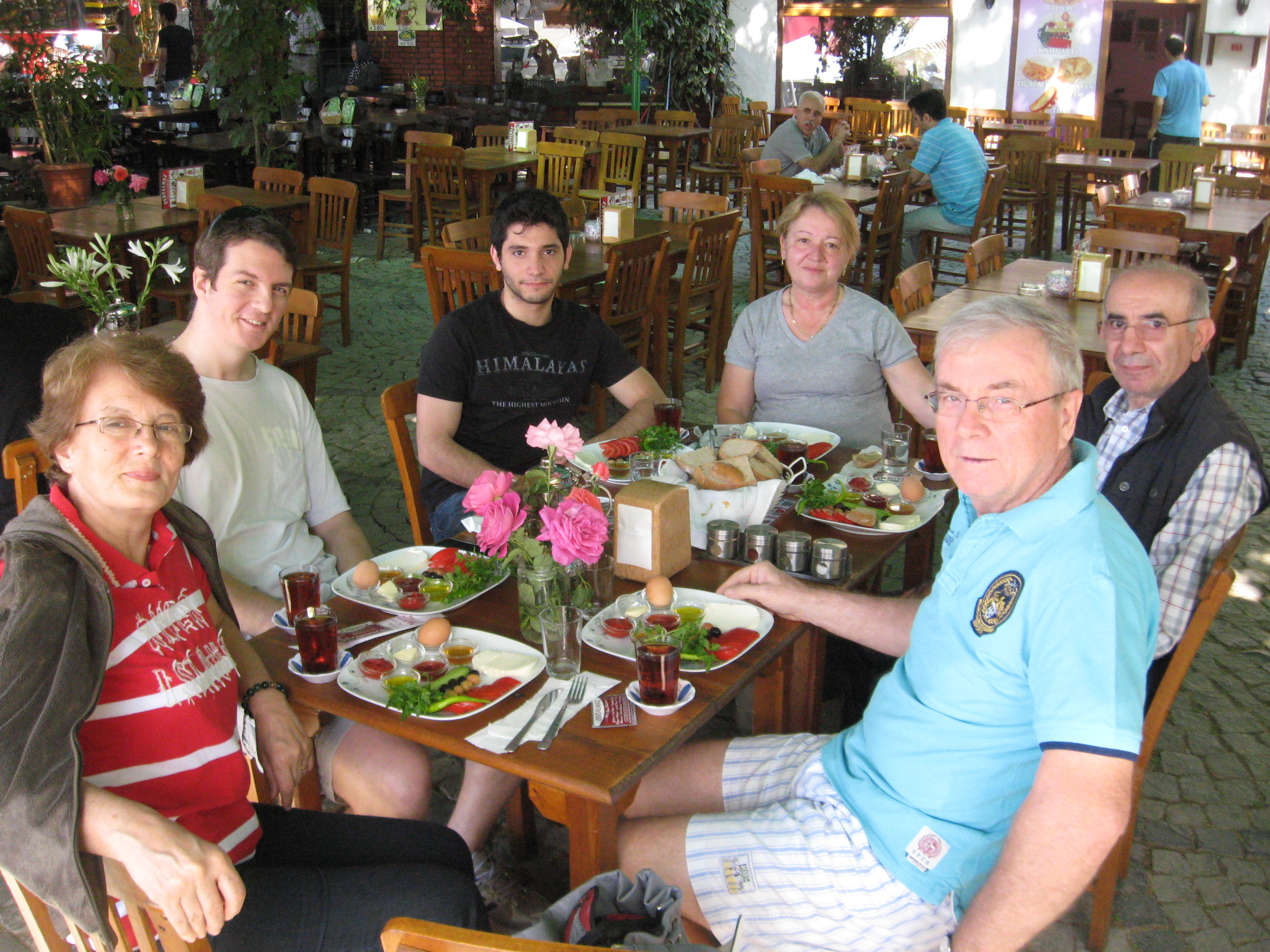 Burasının bir özeliği de İstanbul’da çeşitli sebeplerle buluşamadığınız dostlarla hiç bir program yapmadan sizi buluşturmasıdır. Bunlardan birini de geçtiğimiz günlerde yaşama fırsatı bulduk. Ta 1970 li yıllarda Beykoz’da öğretmenlik yaptığım senelerde başlayıp, Eğitim Enstitüsünde öğrencilik yaptığımız yıllarda da devam eden dostluğumuzun olduğu Kıyasettin beylerle buluşuverdik. Oysa her ikimiz İstanbul’da yaşıyor olmamıza rağmen bu büyük şehir bize bu cömertliği sağlayamıyordu. Birlikte yediğimiz akşam yemeği ile ertesi gün Altınoluk’ta Çınar altında yaptığımız kahvaltıda bu dostlarla güzel vakit geçirdik. Bu güzel dakikaları sanıyorum bize bu coğrafya armağan ediyordur. Bu arada Altınoluk’un köy içindeki asırlık çınarlarının serinliğinde karadut ya da koruk suyu ile birlikte kapaktan kesmeyi herkese tavsiye ederiz.