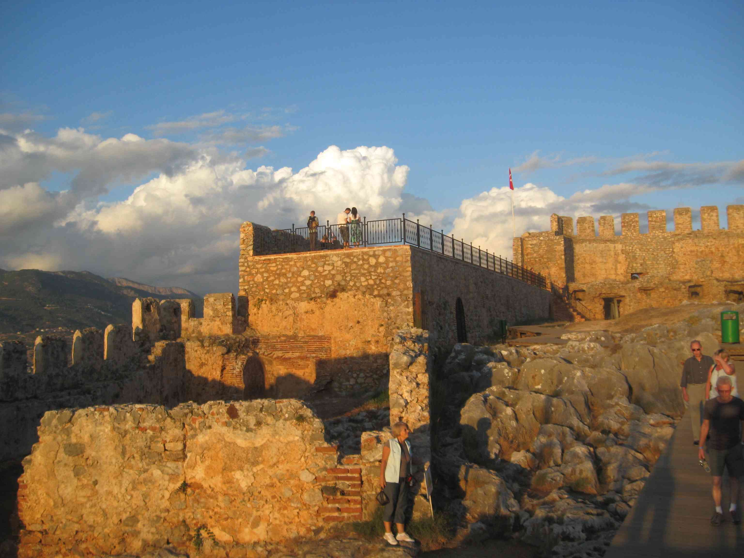 Alanya kalesi daha önce de belirtmeye çalıştığımız gibi denize adeta bir kartal başı gibi uzanan bir burunu andırmaktadır. Karşıdan çok küçük gibi görünen yapıyı yakından incelediğinizde geniş bir arazi üzerine konuşlandığını fark ediyorsunuz. Şehrin her iki yanından kalenin,kaleden şehrin her iki yanının gece ve gündüz çok muhteşem olduğunu hemen belirtmeliyim. Kalenin tarihsel geçmişi Helenistik döneme dayanmakta ise de bu günkü tarihi dokusu ağırlıklı olarak 13.yüzyıl Selçuklular zamanının izlerini taşımaktadır. 1221 yılında kenti alan Selçuklu sultanı Alaeddin Keykubat tarafından yaptırıldığı belirtilen kale bütünlüğü içinde 80 kadar kule,140 burç,400 e yakın sarnıcın bulunduğu ve halen de Hisariçi ve Tophane mahallesi gibi iki yerleşimin varlığı dikkate alındığında kalenin büyüklüğü hakkında bir kanaate varmak zor olmasa gerek…