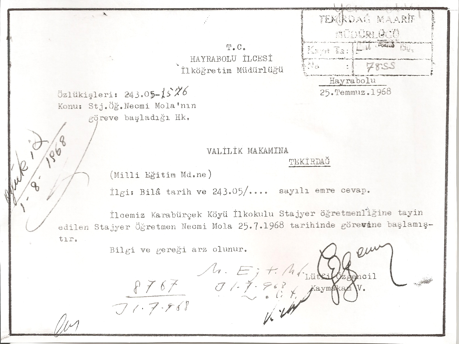Takvimler 1968 yılının 29 Haziranını gösterdiğinde artık resmen öğretmendim. Ancak bizzat görev yapacağım okula ve öğrencilere kavuşmak için ise eylül ayını beklemem gerekecekti. Kartvizit falan bastırmadım ama kendimi Tekirdağ’ın Hayrabolu İlçesinin Karabürçek köyü İlkokulu öğretmeni olarak tanıtabiliyordum artık.